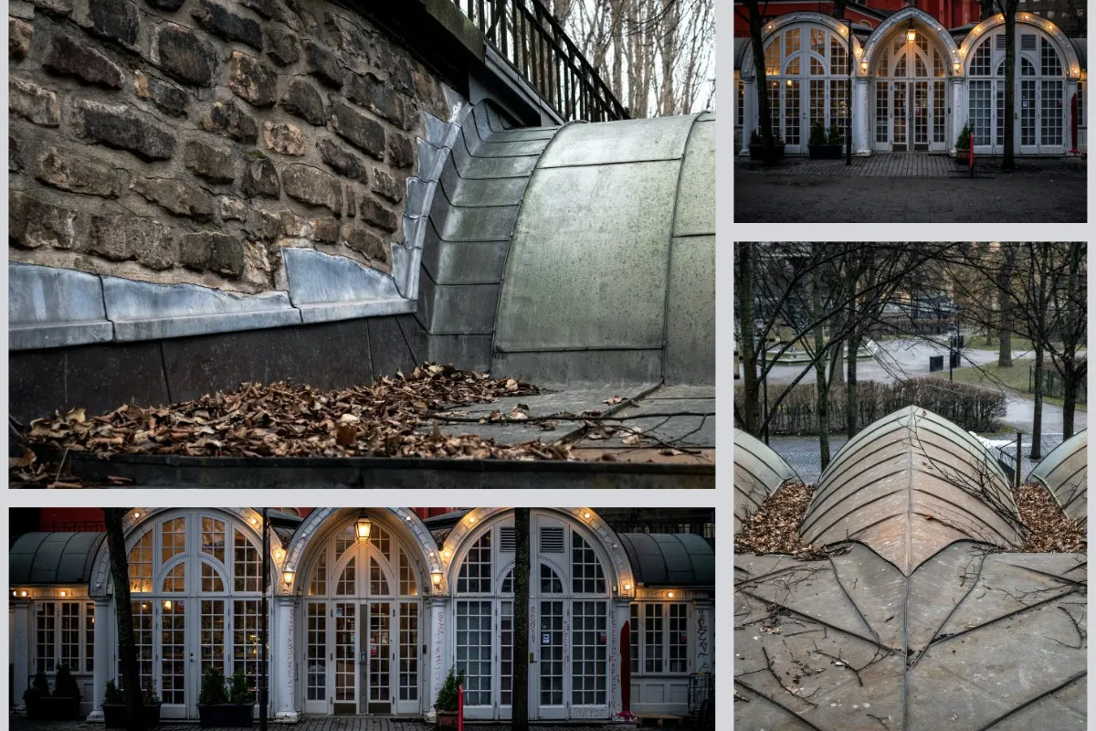Det specialtillverkade avrinningssystemet integrerades i takets geometri med beaktande av byggnadens arkitektoniska uttryck och befintliga konstruktionsförutsättningar.